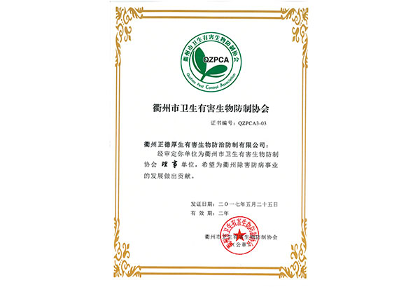 江德宜居环境科技有限公司Cؓ江省除四害U技协会AU资质,同时也是江省除四害U技协会会员单位、中国有害生物防制协会会员单位,是国内专业从事虫x制管理(PMPQ技术与理念的专业虫害管理公怹一?/p>